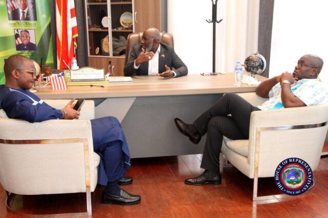 MONROVIA – The Speaker of the House of Representatives, Mr. Richard Nagbe Koon, welcomed and held a high-level meeting with the Speakers of the Parliaments of Sierra Leone, Mr. Segepoh Solomon Thomas and Guinea, Rt. Dr. Dansa Kourouma at his Capitol Building office.