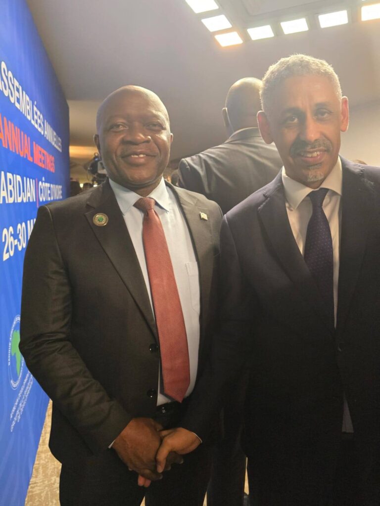 Finance and Development Planning Minister congratulating AfDB incoming President Sidi Ould Tah of Mauritania