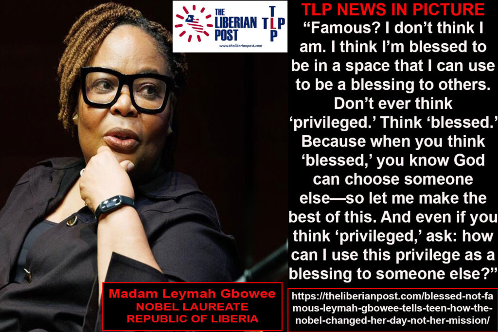 MONROVIA – When a teenager named Lemuel asked Nobel Peace Prize Laureate Leymah Gbowee how it feels to be famous, she answered with a story that sounded less like celebrity and more like a whirlwind.