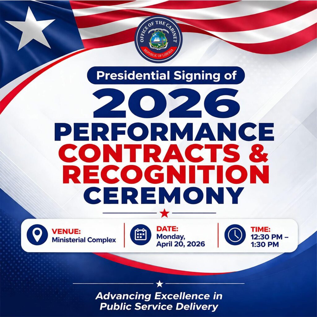 MONROVIA — President Joseph Nyuma Boakai has presided over a landmark governance event combining the signing of 2026 performance contracts, the release of national performance results, and the honoring of top-performing public institutions under Liberia’s Performance Management and Compliance System (PMCS).
