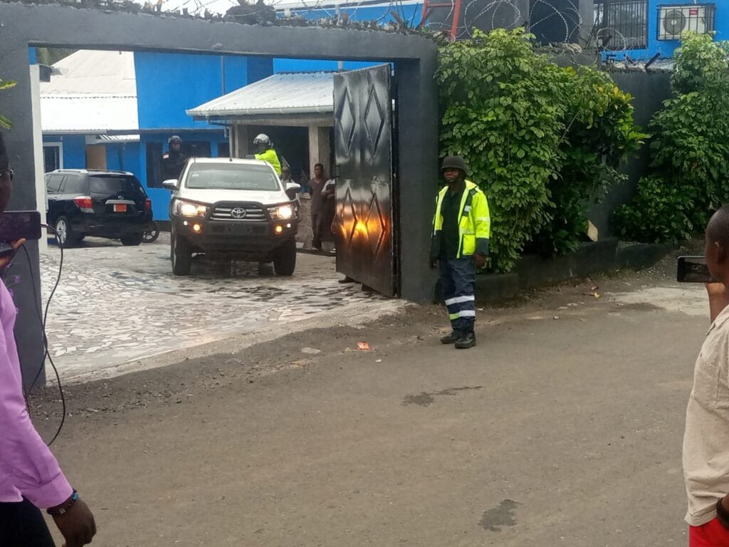 Former Foreign Minister Dee-Maxwell Saah Kemayah hold his wife’s hand when he was released from brief detention in the Monrovia Central Prison