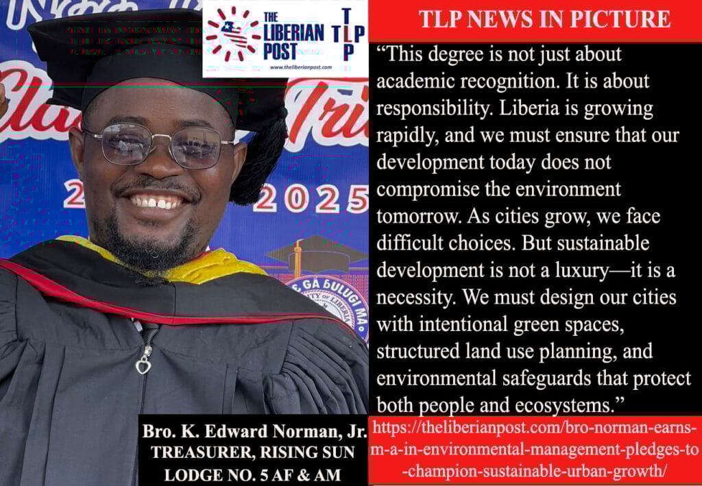 MONROVIA, Liberia — A new chapter in environmental leadership has opened with the graduation of Bro. K. Edward Norman, Jr., who has earned a Master of Arts Degree in Environmental Management from the University of Liberia’s College of Environmental Studies.
