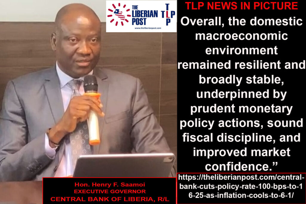 Headline inflation fell sharply to an estimated 6.1% in the third quarter from 11.1% in the second, driven by lower food prices and easing imported inflation, the Central Bank of Liberia (CBL) said. “Overall, the domestic macroeconomic environment remained resilient and broadly stable, underpinned by prudent monetary policy actions, sound fiscal discipline, and improved market confidence,” Saamoi said.