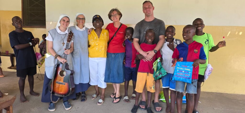 Her humanitarian tour began on December 23, 2025, at St. Bakhita Catholic Children Facility in Virginia, Montserrado County, a mission-run home caring for between 40 and 50 children, some as young as two months old. Welcomed by Head Nun Sabrina Kern and other missionaries, Mrs. Itoka donated bags of rice, Clorox, Rexoguard, scented floor cleaners, laundry detergent, milk, toiletries, and Christmas gift bags. The visit was marked by emotional scenes as children sang songs of appreciation and embraced their visitor. “When they hug you and say thank you, it moves you deeply,” Mrs. Itoka said.