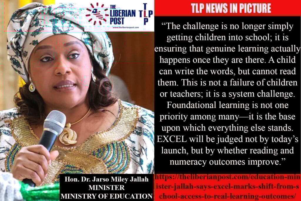 MONROVIA, Liberia — Education Minister Dr. Jarso Miley Jallah has declared that Liberia is entering a new phase of education reform focused not merely on getting children into classrooms, but on ensuring they actually learn once they are there, as the government officially launched the Excellence in Learning in Liberia (EXCEL) Project.