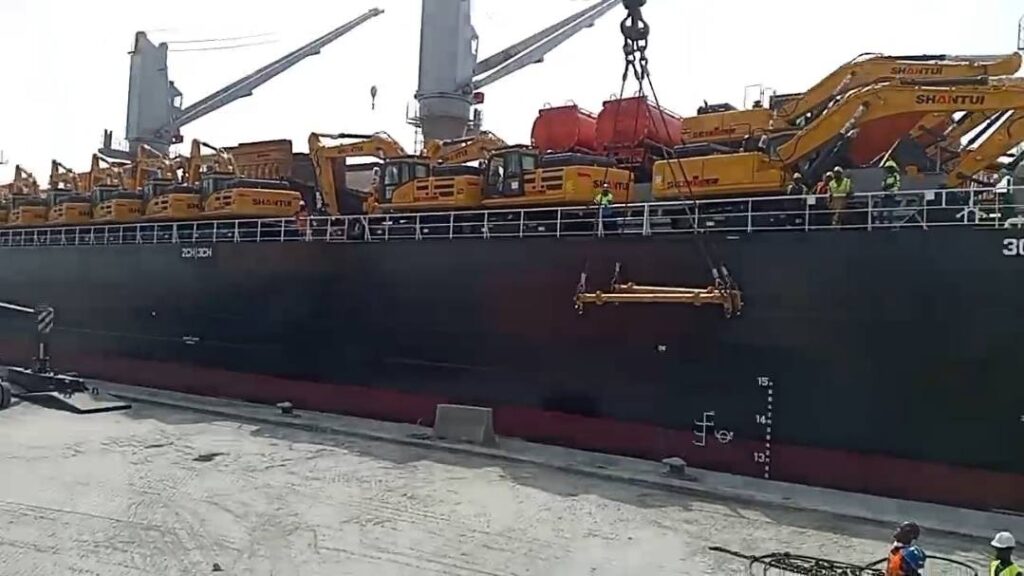 As the mobile harbor crane gently lowered the truck onto the dock at approximately 3:27 p.m., it became the symbolic start of what government officials describe as a transformative decentralization of road-building capacity.
