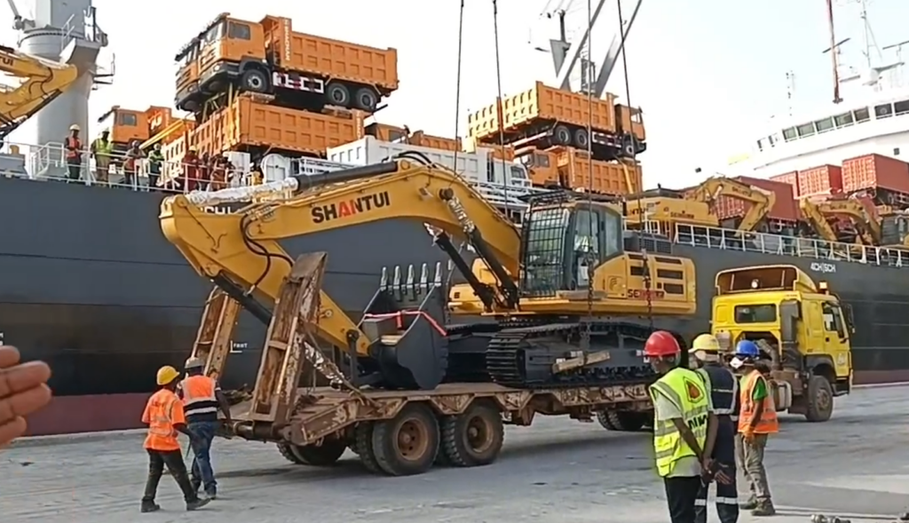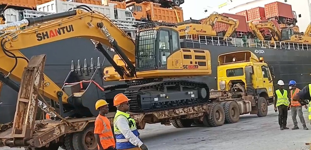 When the first actual “yellow” excavator—model SE335LC manufactured by Shantui—was hoisted from the vessel, it bore the flag of Grand Kru County, further energizing counties across the southeast. Grand Kru is the home county of former President and opposition figure George Manneh Weah.