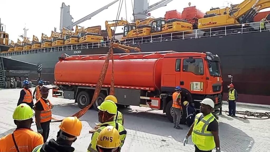 In a moment that drew cheers both at the port and across live broadcasts, the very first piece of equipment to touch Liberian soil was a 2,000-gallon fuel truck bearing the flag of Rivercess County.