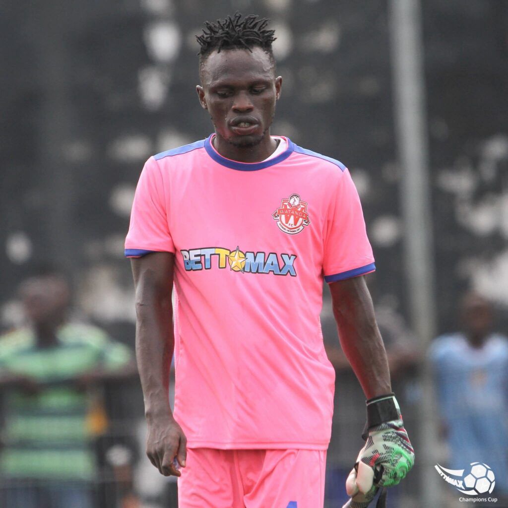 The Watanga FC goalie walks dejectedly after the defeat in the Bettomax Champions Cup