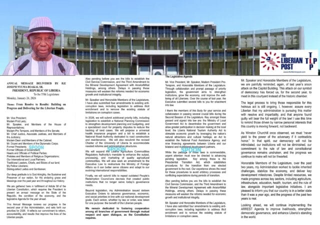 Minister Piah described the premature circulation of the President’s address before and during its delivery as a serious breach of ethical and professional standards. He disclosed that the Executive Mansion and the Ministry of State are actively probing how the document entered the public domain ahead of its official presentation.
