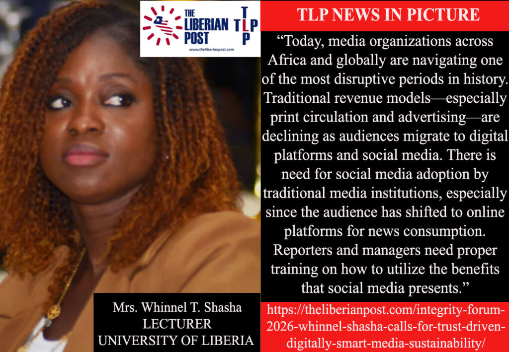 MONROVIA, Liberia — At a time when media institutions across Liberia are grappling with shrinking revenues and rising digital disruption, Mrs. Whinnel T. Shasha, lecturer at the University of Liberia and media management expert, delivered a compelling and solutions-oriented presentation at the Integrity Media Forum 2026, urging traditional media to rethink survival—not as desperation, but as strategy.