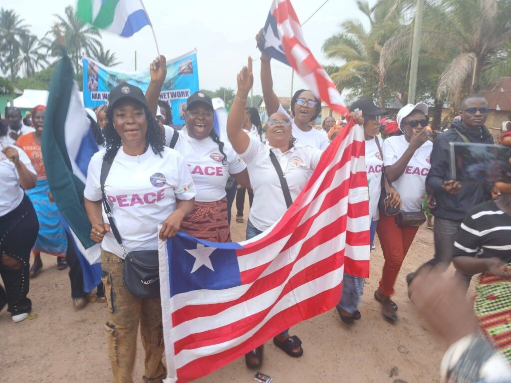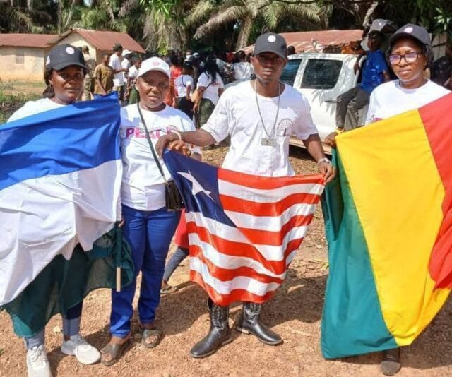 Dressed largely in white T-shirts emblazoned with the word “PEACE,” demonstrators—many of them women—marched through rural communities waving national flags of Liberia, Sierra Leone, and Guinea. The visual symbolism underscored their central message: that the Kissi people remain one community despite colonial-era borders dividing them.
