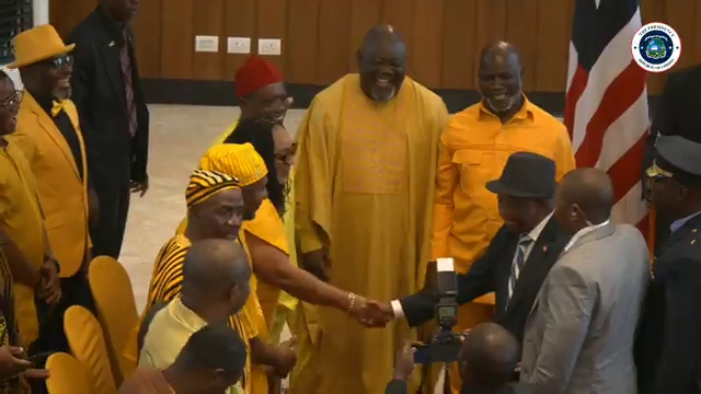 EXECUTIVE MANSION, Monrovia – In a rare show of collective enthusiasm, an overwhelming majority of members of the House of Representatives, clad in yellow attire to symbolize the newly arrived road equipment, paid a courtesy visit to President Joseph Nyuma Boakai at the Executive Mansion on Thursday morning, praising him for delivering on his promise to bring earth-moving machines to the counties.