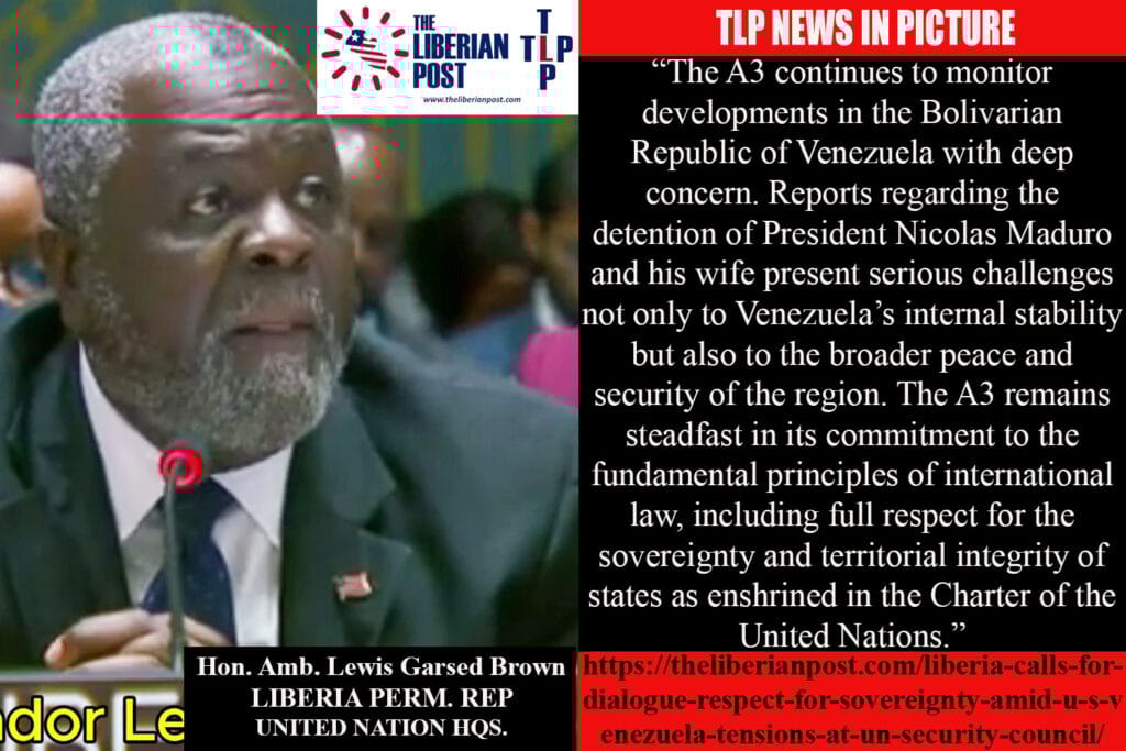 UN HQs, New York — Liberia, speaking on behalf of the A3 group at the United Nations Security Council, has called for restraint, dialogue, and strict adherence to international law amid rising tensions surrounding developments in the Bolivarian Republic of Venezuela.