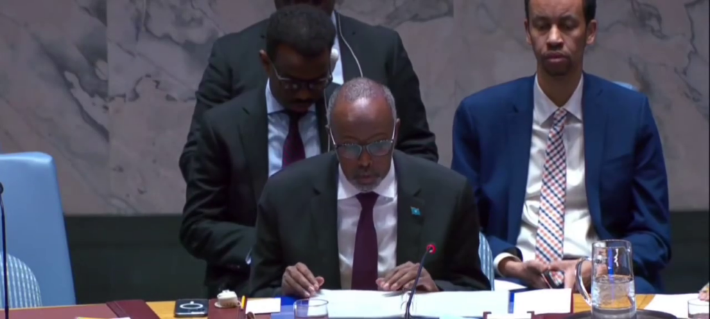 Ambassador Abukar Dahir Osman, Somalia’s Permanent Representative to the UN and now President of the UN Security Council giving the floor to Foreign Minister Beysolow-Nyanti to speak