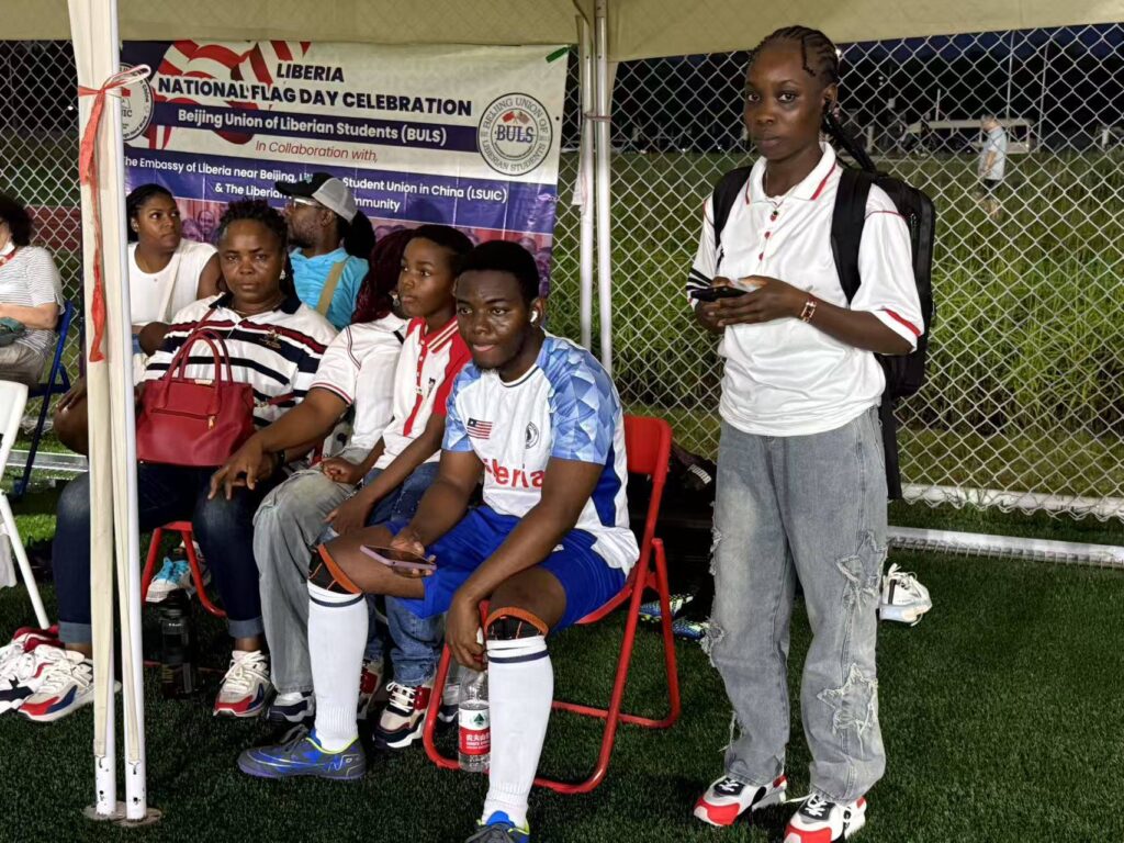 BEIJING, CHINA – The Beijing Union of Liberian Student (BULS) headed by its President Nasa Thompson with support from the Embassy of the Republic of Liberia in China hosted a vibrant Flag Day celebration on August 24, bringing together diplomats, students, and friends of Liberia for an afternoon of sports and cultural exchange. The event featured a friendly football match that saw Liberian diplomats and students face off against international guests in a closely contested game that ended 3-2 in favor of the visitors.
