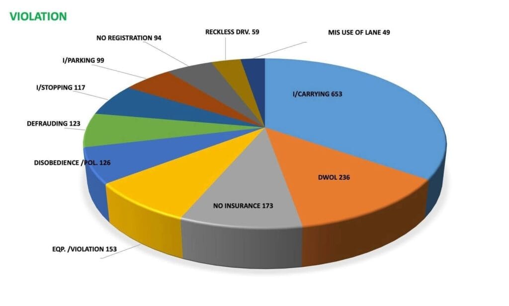 According to the report, the most notable hotspots for traffic violations included the Monrovia–Kakata Highway, with a staggering 1,321 violations, followed by the Monrovia–Bomi Highway, which recorded 869 violations. Other significant areas included the Roberts International Airport (RIA) Highway with 836 violations, and Paynesville, where there were 653 violations.
