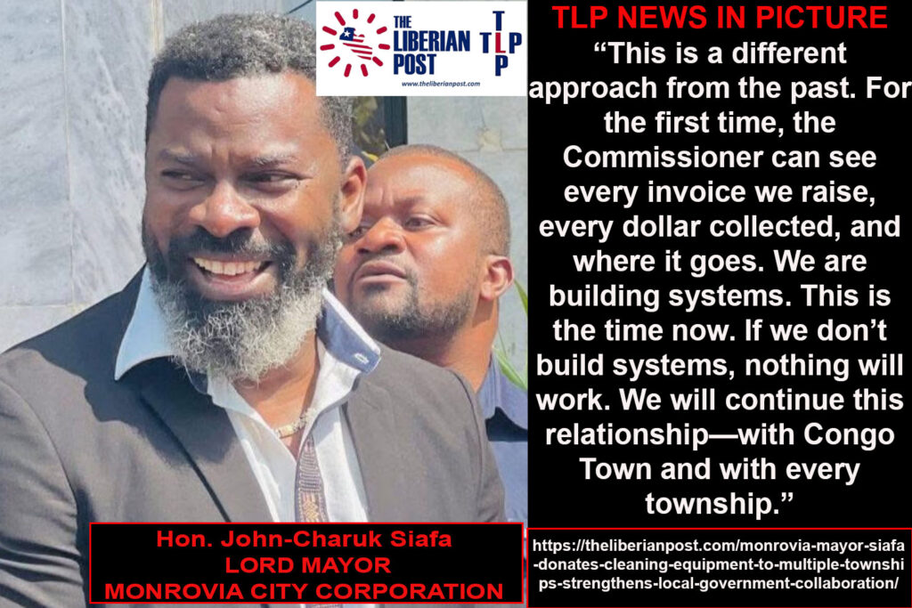 MONROVIA, Liberia — In a renewed push toward decentralization and improved sanitation across Greater Monrovia, Mayor John-Charuk Siafa on Monday, December 8, led a series of community engagements and equipment donations to local township administrations, beginning in Congo Town and extending to Garwolohn Township and the Borough of New Kru Town. The initiative is part of the Monrovia City Corporation’s (MCC) broader effort to strengthen local governance, expand community-based sanitation programs, and enhance collaboration with local administrators.