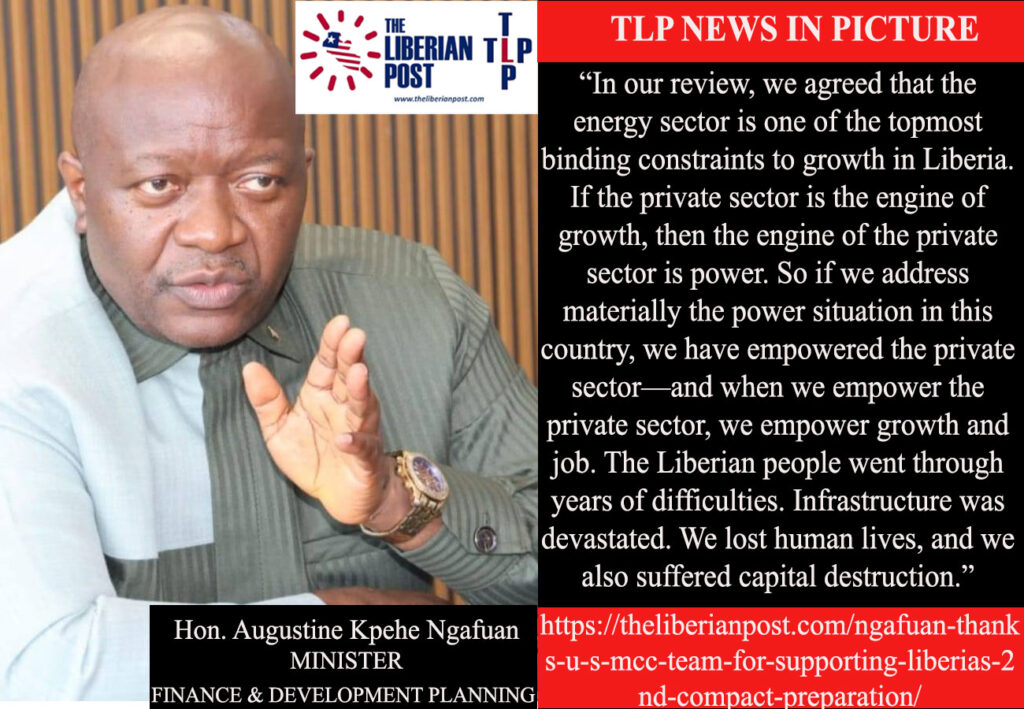“In our review, we agreed that the energy sector is one of the topmost binding constraints to growth in Liberia,” Ngafuan explained. “If the private sector is the engine of growth, then the engine of the private sector is power.”