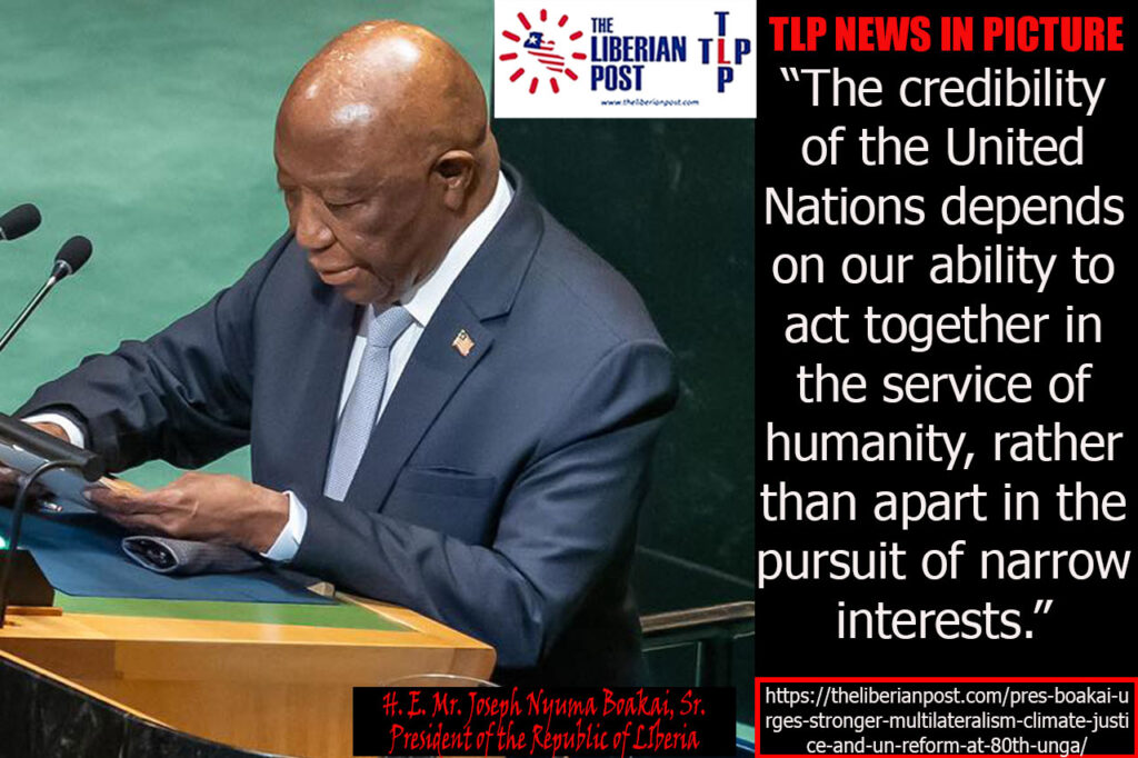 “Reversal of multilateralism is not an option for a just and peaceful world,” Boakai declared. “The credibility of the United Nations depends on our ability to act together in the service of humanity, rather than apart in the pursuit of narrow interests.”