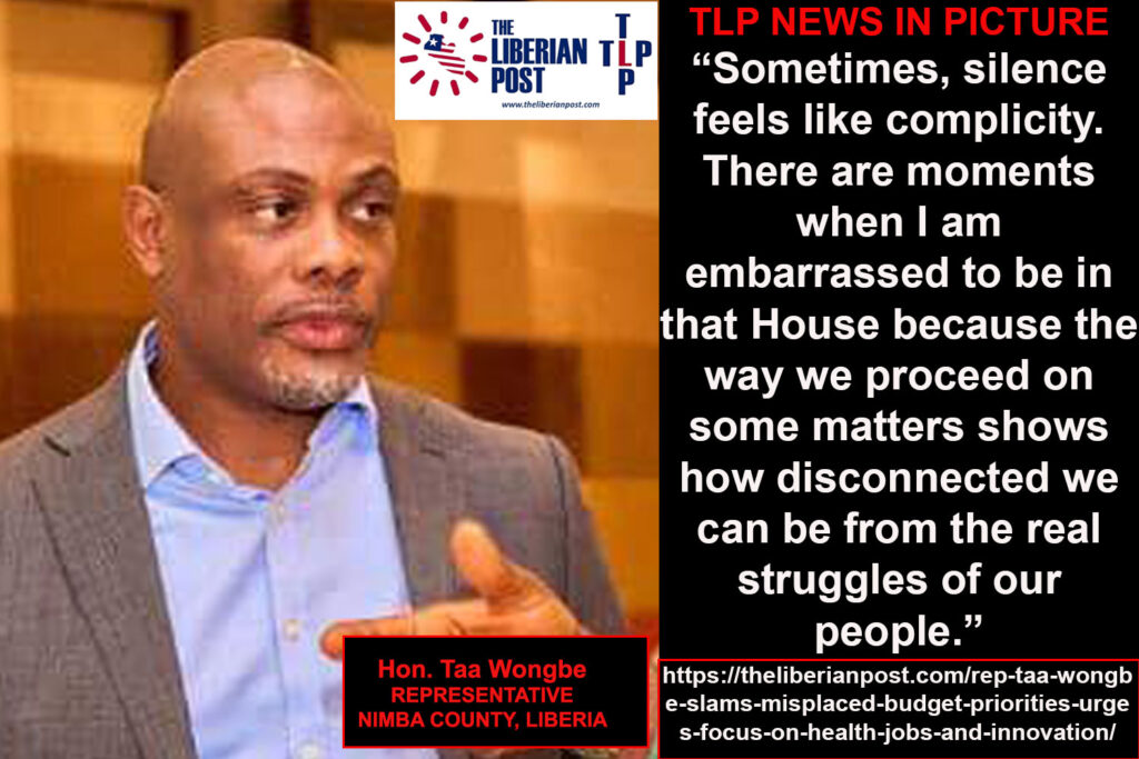 MONROVIA, Liberia — Nimba County Representative Taa Wongbe has sharply criticized what he describes as misplaced priorities in Liberia’s national budget, urging his colleagues in the Legislature to redirect spending toward health, youth empowerment, and innovation rather than luxury and administrative perks.