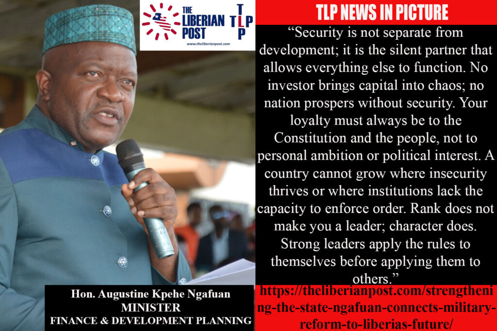 MONROVIA, Liberia — Finance and Development Planning Minister Augustine Kpehe Ngafuan has drawn a direct link between Liberia’s national development agenda and the reform and resourcing of its security institutions, declaring that a professional, well-supported military is essential to building a stable and prosperous state.