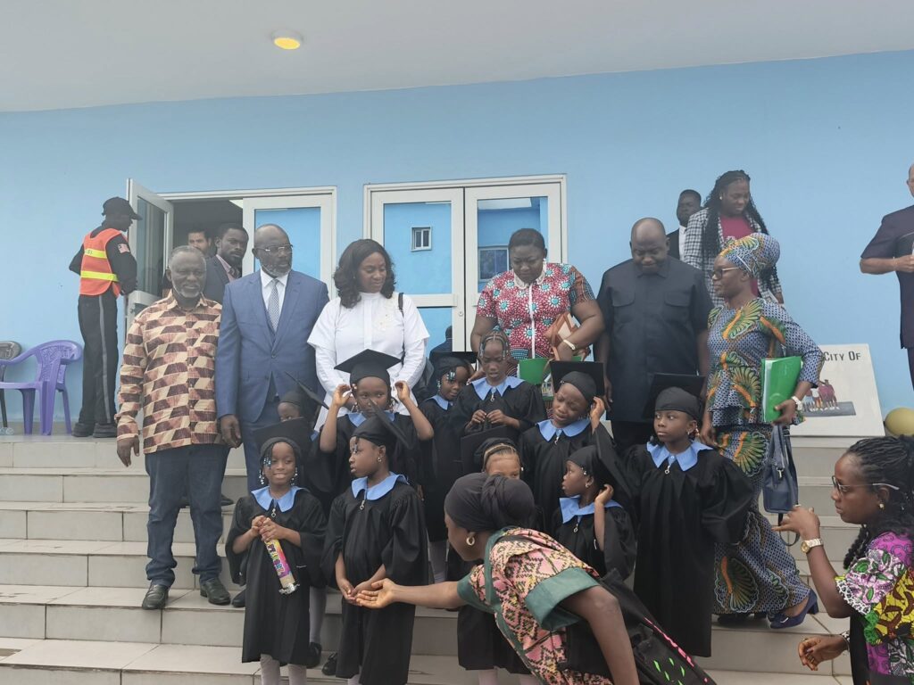 Mr. Weah, accompanied by his wife, former First Lady Clar Weah, was photographed at the graduation of the City of Hope Academy — a school established by the Clar Hope Foundation in Paynesville. The former First Family was seen engaging warmly with graduates, faculty, and parents, celebrating the achievements of the students during the colorful ceremony.
